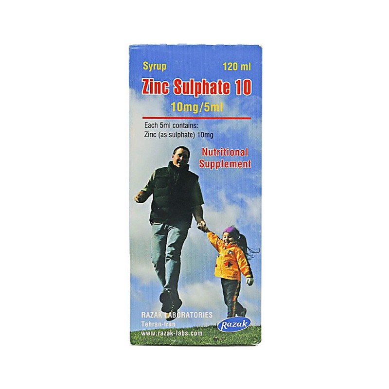 يمكن أن يساعد الاستخدام المنتظم لكبريتات الزنك ١٠ في منع نقص الزنك، المرتبط بتأخر النمو، ضعف المناعة، ومشاكل صحية أخرى. يتم صياغة هذا المنتج من قبل مختبرات رازك في إيران ومتوفر في زجاجة زجاجية بحجم ١٢٠ مل.
