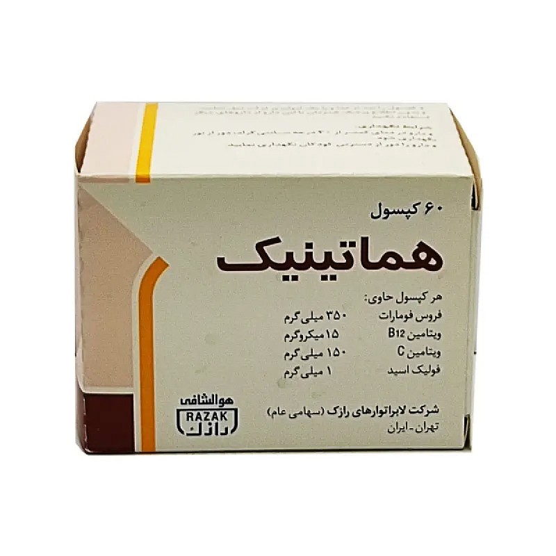 Hematinic 60 by Razak is a potent supplement designed to combat severe iron deficiency anemia. Each capsule contains 350 mg of iron in the form of ferrous fumarate, equivalent to 115.5 mg of elemental iron. This high-dose iron supplement is complemented by essential vitamins such as B12 and folic acid, which aid in the production of red blood cells.