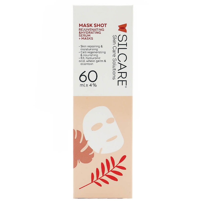 The Silcare Mask Shot is expertly formulated to rejuvenate and hydrate your skin deeply. Enriched with hyaluronic acid, vitamin B3, and wheat germ extract, this mask improves skin elasticity and reduces the appearance of fine lines. The presence of allantoin offers anti-inflammatory benefits, while niacinamide aids in repairing UV-damaged cells. Each pack contains 60 ml of serum and three sheet masks, designed for dual use, ensuring prolonged skin nourishment and hydration.