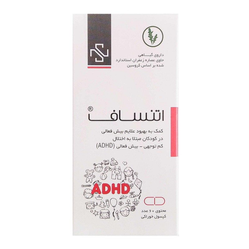 Attensaf is a natural product containing standardized saffron extract based on crocin, aimed at improving symptoms of hyperactivity in children with ADHD. Produced by Samanik Salamat Gostar in Iran, each capsule contains 10 mg of saffron extract and is clinically approved by Tehran University of Medical Sciences.