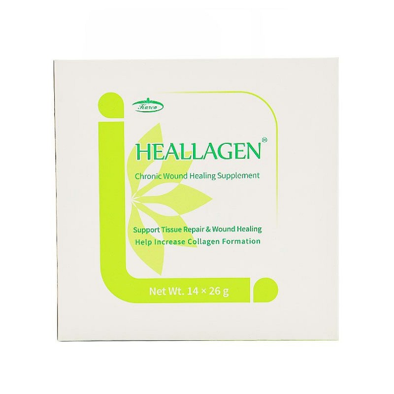 Heallagen is a nutritional supplement developed by Karen, formulated to assist in the faster healing of resistant wounds and stimulate collagen production. Each sachet contains a blend of L-Arginine, L-Glutamine, and Calcium Beta Hydroxy Beta Methylbutyrate (HMB), which are crucial for tissue repair.